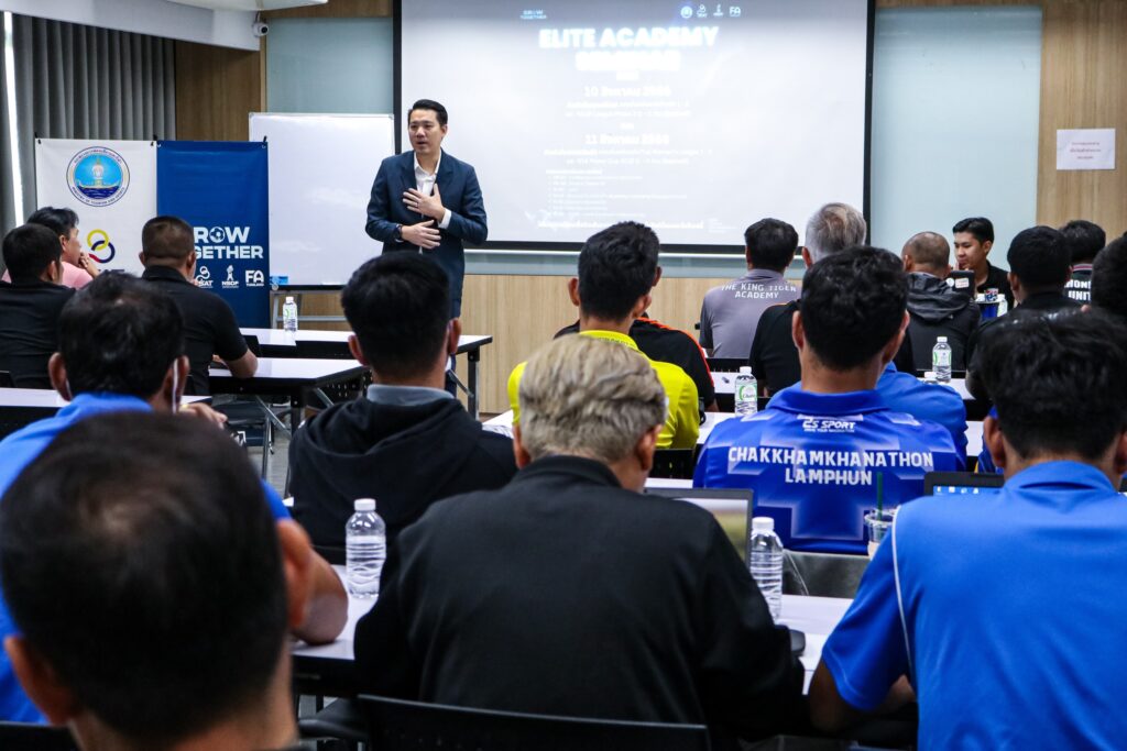 วันที่ 10-11 สิงหาคม 2566 สมาคมกีฬาฟุตบอลแห่งประเทศไทย ร่วมกับ กระทรวงการท่องเที่ยวและกีฬา การกีฬาแห่งประเทศไทย และ กองทุนพัฒนากีฬาแห่งชาติ ได้จัดสัมมนางาน Grow Together Elite Academy Seminar 2023 ผ่านโครงการฟุตบอลรากหญ้า