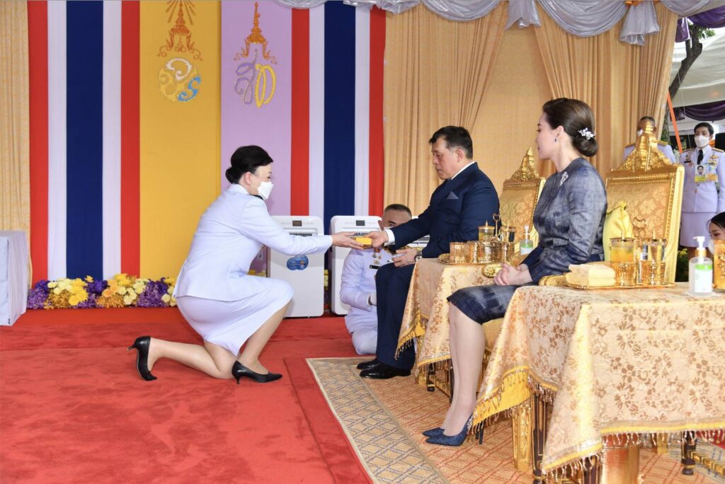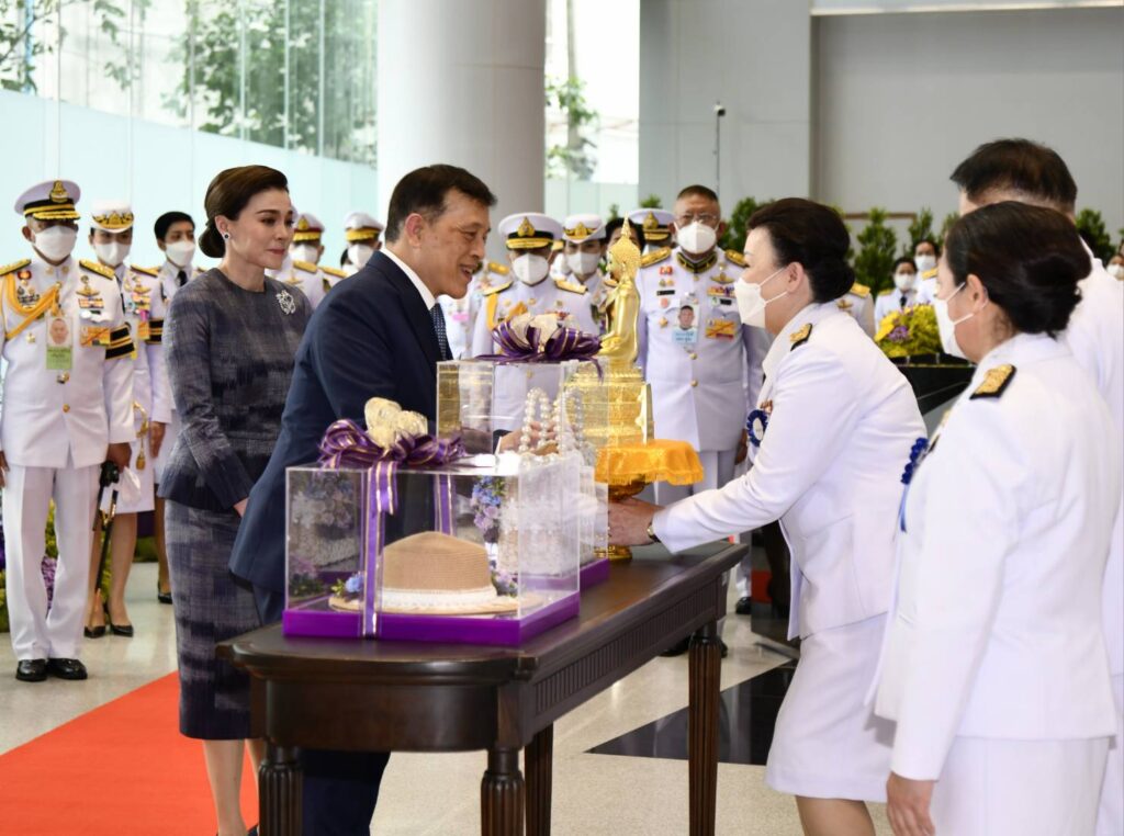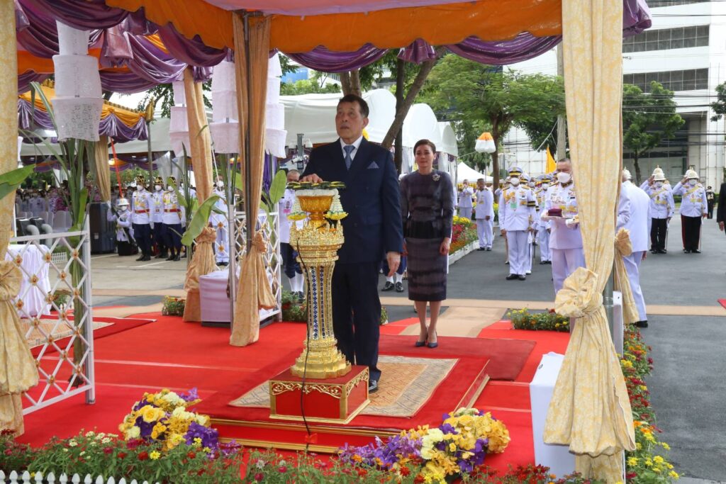 กรุงเทพฯ-พระบาทสมเด็จพระเจ้าอยู่หัว สมเด็จพระนางเจ้า ฯ พระบรมราชินีเสด็จพระราชดำเนินทรงประกอบพิธีวางศิลาฤกษ์และทรงเปิดอาคารที่ทำการสำนักงานศาลยุติธรรมแห่งใหม่บนถนนรัชดาภิเษกวันนี้ (21 ก.ย.2567) เวลา 15.33 น. พระบาทสมเด็จพระปรเมนทรรามาธิบดีศรีสินทรมหาวชิราลงกรณ พระวชิรเกล้าเจ้าอยู่หัว และสมเด็จพระนางเจ้าสุทิดา พัชรสุธาพิมลลักษณพระบรมราชินีเสด็จพระราชดำเนินทรงประกอบพิธีวางศิลาฤกษ์ และทรงเปิดอาคารที่ทำการสำนักงานศาลยุติธรรม เลขที่ 55 ถนนรัชดาภิเษก แขวงจอมพล เขตจตุจักร กรุงเทพมหานคร โดย นางอโนชา ชีวิตโสภณ ประธานศาลฎีกา นายธานี สิงหนาท เลขาธิการสำนักงานศาลยุติธรรม พร้อมด้วยข้าราชการฝ่ายตุลาการศาลยุติธรรมชั้นผู้ใหญ่ และข้าราชการฝ่ายตุลาการศาลยุติธรรมประจำสำนักงานศาลยุติธรรมเฝ้า ฯ รับเสด็จเมื่อเสด็จเข้าพลับพลาพิธี พระบาทสมเด็จพระเจ้าอยู่หัว ทรงจุดธูปเทียนเครื่องนมัสการบูชาพระพุทธยุติธรรมโลกนาถเสร็จแล้วทรงประทับพระราชอาสน์ ทรงศีล ในการนี้นายภพ เอครพานิช และนายเผ่าพันธ์ ชอบน้ำตาล รองเลขาธิการสำนักงานศาลยุติธรรม เข้าเฝ้าทูลละอองธุลีพระบาท ทูลเกล้าทูลกระหม่อมถวายหนังสือที่ระลึกแด่พระบาทสมเด็จพระเจ้าอยู่หัวและสมเด็จพระนางเจ้า ฯ พระบรมราชินีจากนั้น นางอโนชา ชีวิตโสภณ ประธานศาลฎีกากราบบังคมทูลรายงาน พร้อมขอพระราชทานกราบบังคมทูลเชิญเสด็จ ฯ ทรงประกอบพิธีวางศิลาฤกษ์ และทรงเปิดอาคารที่ทำการสำนักงานศาลยุติธรรมพระบาทสมเด็จพระเจ้าอยู่หัว เสด็จออกจากพลับพลาพิธี ไปยังมณฑลพิธีวางศิลาฤกษ์ ทรงพระสุหร่าย ทรงเจิมแผ่นอิฐ ทอง นาก เงิน แผ่นศิลาฤกษ์แล้วทรงวางลงในหลุม เสด็จ ฯ ไปยังแท่นพิธีทรงกดปุ่มไฟฟ้าเปิดแพรคลุมป้ายอาคารที่ทำการสำนักงานศาลยุติธรรมครั้นเสร็จสิ้นพิธีนายธานี สิงหนาท เลขาธิการสำนักงานศาลยุติธรรม กราบบังคมทูลเบิกข้าราชการฝ่ายตุลาการศาลยุติธรรมและผู้มีอุปการคุณ จำนวน 120 รายเข้าเฝ้าทูลละอองธุลีพระบาทรับพระราชทานเข็มที่ระลึกจากนั้นนายไกรสร โสมจันทร์ ผู้พิพากษาศาลอุทธรณ์ประจำสำนักประธานศาลฎีกาเข้าเฝ้า ฯ ทูลเกล้า ฯ ถวายแผ่นศิลาเพื่อทรงลงพระปรมาภิไธย และทรงลงพระนามาภิไธยเสร็จแล้วทรงกราบที่หน้าเครื่องนมัสการ ทรงลาพระสงฆ์เสด็จออกจากพลับพลาพิธีเข้าห้องประทับรับรองอาคารที่ทำการสำนักงานศาลยุติธรรมชั้น 12ทรงลงพระปรมาภิไธย และทรงลงพระนามาภิไธยในสมุดที่ระลึก แล้วทรงฉายพระบรมฉายาลักษณ์ร่วมกับสมเด็จพระนางเจ้า ฯพระบรมราชินี ข้าราชการฝ่ายตุลาการศาลยุติธรรมชั้นผู้ใหญ่แ