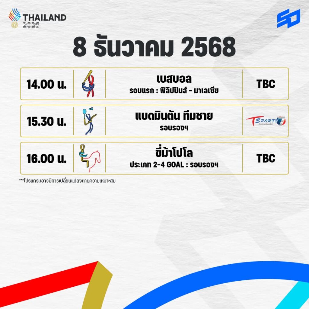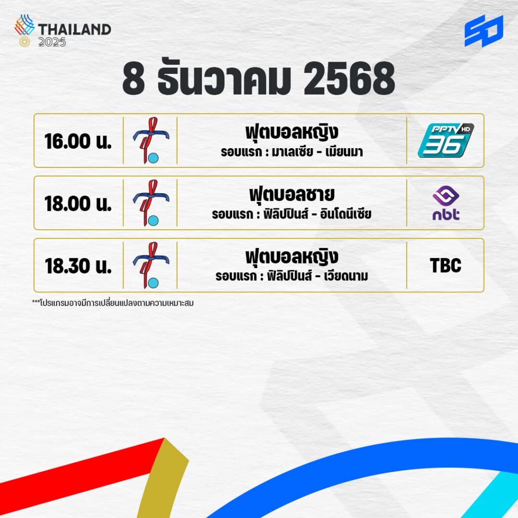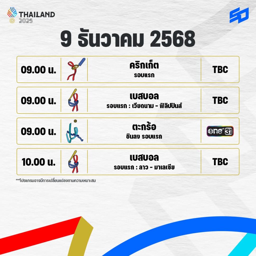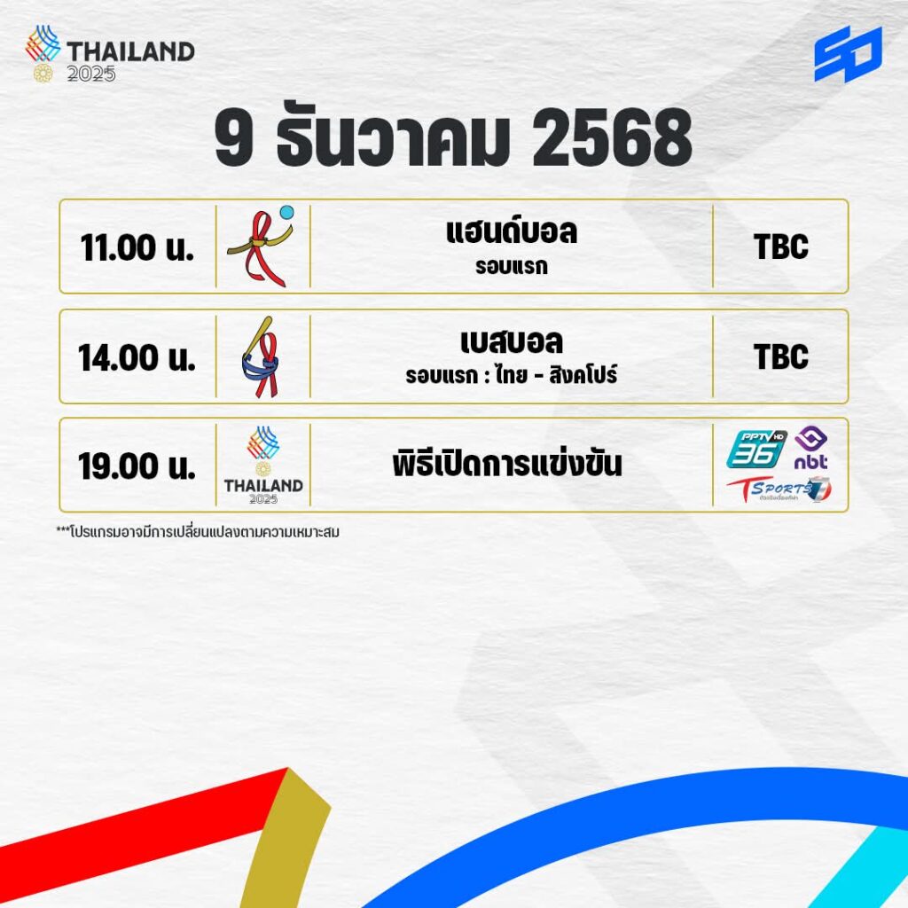โปรแกรมการแข่งขัน และโปรแกรมถ่ายทอดสดซีเกมส์ 2025 วันที่ 3-9 ธ.ค. 2025ถ่ายทอดสดทาง PPTV 36, ไทยรัฐทีวี 32, ONE 31, T Sports 7, NBT และ TrueVisions NOW***โปรแกรมอาจมีการเปลี่ยนแปลงตามความเหมาะสมมหกรรมกีฬาซีเกมส์ ครั้งที่ 33 ไทยแลนด์ 20259-20 ธันวาคม 2568 ที่ กรุงเทพฯ และ ชลบุรี#StadiumTH #THAIteamชนะใจคนไทย #นักกีฬาทีมชาติไทย #ทีมชาติไทย #เชียร์ไทยในบ้านเรา #SEAGAMES2025 #ซีเกมส์ #HomeofTHAITeam #HomeofSEAGAMES